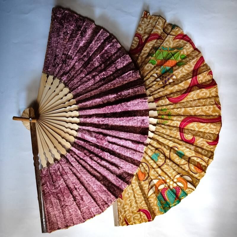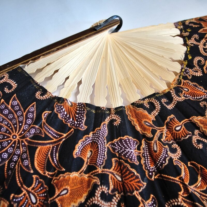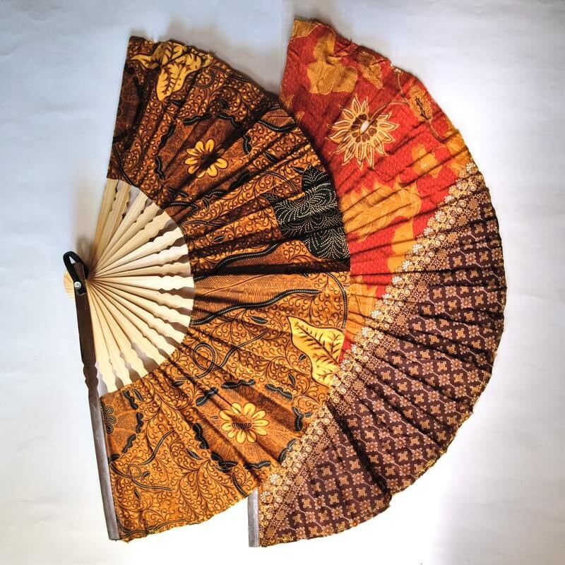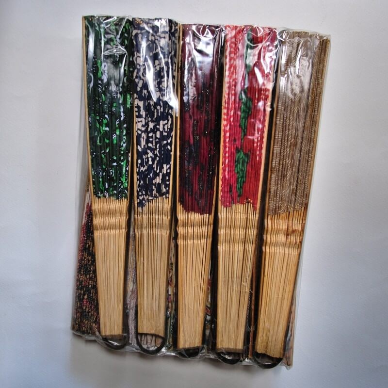 28 cm 10 pcsÉventails en bambou et tissu "style Batik" par lot de 10 pièces assorties.