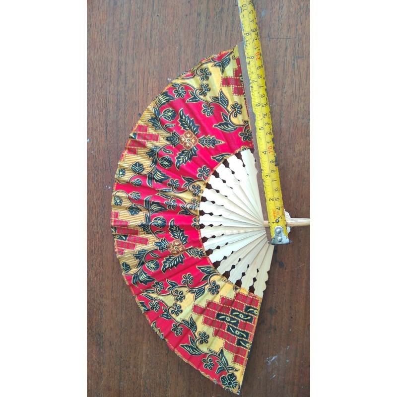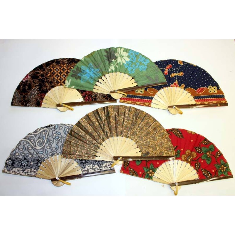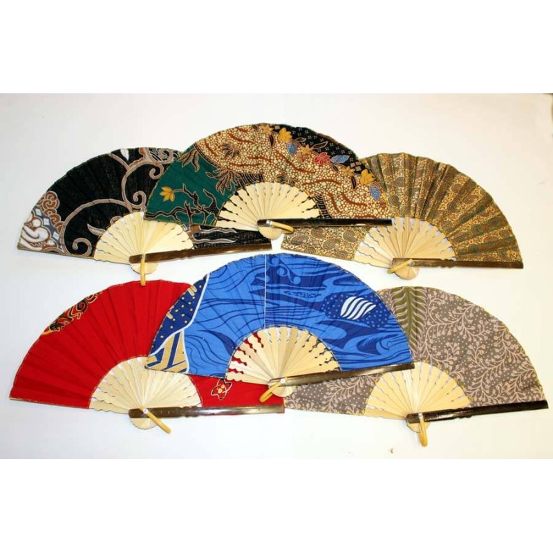 22 cm 20 pcsÉventails en bambou et tissu "style Batik" par lot de 20 pièces assorties.